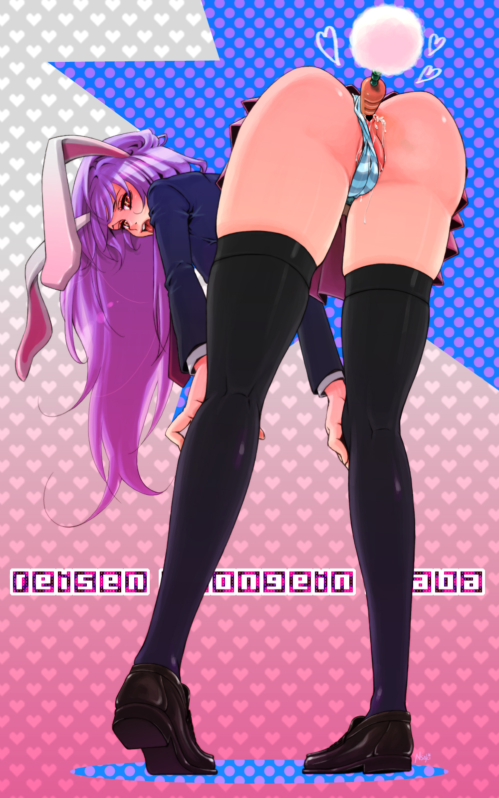 1girlanalanal tailanimal earsassbent overblack thighhighsbutt plugcarrotclothing asidefake tailfemale focusfrom behindhands on own kneesheartkneepitslong hairlooking backobject insertionorange eyespantiespanties asidepartially visible vulvapurple hairrabbit earssex toyskindentationsolostriped clothesstriped pantiestailthighhighstiptoestongueunderwear