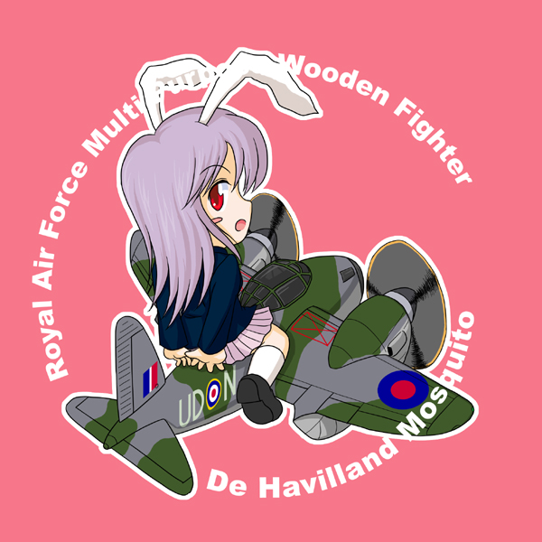 1girlaircraftairplaneanimal earsblazerchibide havilland mosquitofemale focusjacketlong hairlooking backmilitarymilitary vehiclepropeller fighterpurple hairrabbit earsred eyessoloworld war ii