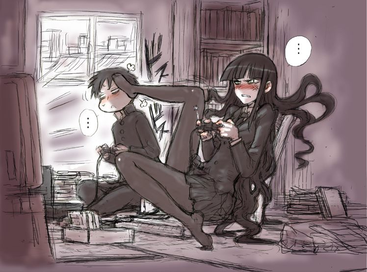 :d1boy1girlanger veinangryblack hairblack pantyhoseblazerblunt bangsblushbookshelfclenched teethcontrollerfeetfull bodygakurangame controllergamepadgreen eyesheight differenceholdingindoorsjacketkickinglong hairlong sleevesmotion linesnecktieno shoesnose blushopen mouthpantyhoseplaying gamespleated skirtschool uniformshirtshort hairsittingsketchskirtspoken ellipsisteethvery long hairvideo gamewing collar