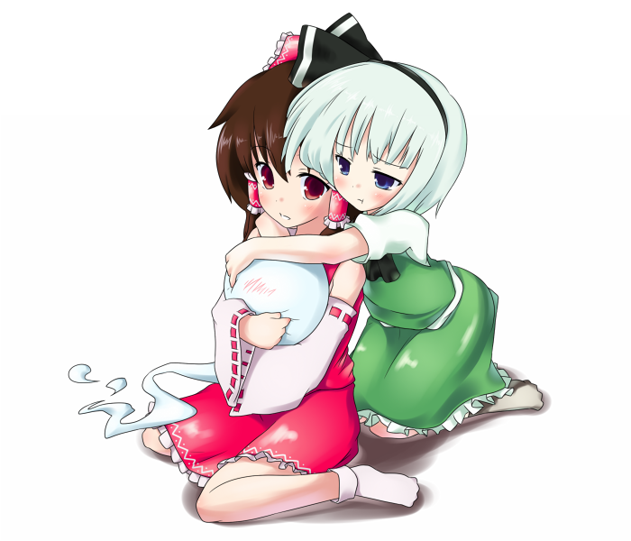 sharpski, hornet (hollow knight), knight (hollow knight), hollow knight: silksong, absurdres, highres, 1girl, 1other, black skin, cloak, colored skin, eye contact, from side, glowing, glowing eyes, hollow eyes, looking at another, mask, red background, red theme