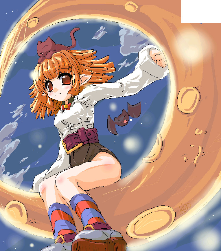:31girlbat (animal)beltbowbowtiecatelffemale focusmoonpointy earsshortssockssolostriped clothesstriped socks