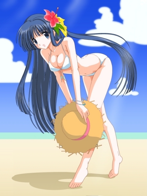 tori (minamopa), miracle tou, rance (series), highres, 1girl, bare shoulders, bikini, black bikini, black hair, blush, bottomless, breasts, curtains, front-tie bikini top, front-tie top, groin, large breasts, long hair, looking at viewer, mirror, navel, orange eyes, solo, swimsuit, unworn bikini bottom