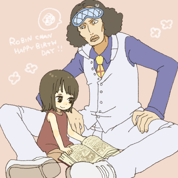 1boy1girlaged downbetween legsblack hairblue shirtbookbrown eyesbuttonschildcollared shirtdressenglish texthead tiltlipslong sleeveslooking at anotherlooking downnecktieopen bookout of characterpantsreadingshirtshoesshort hairsittingsleep masksleevelesssleeveless dresssmilevestwaistcoatwarizawhite pants