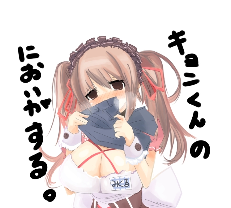 achi, hana ichiko, original, lowres, 1girl, breasts, brown hair, cleavage, closed eyes, clothes pull, female focus, hot, large breasts, shirt pull, shirt tan, solo, sweat, tan, tanline