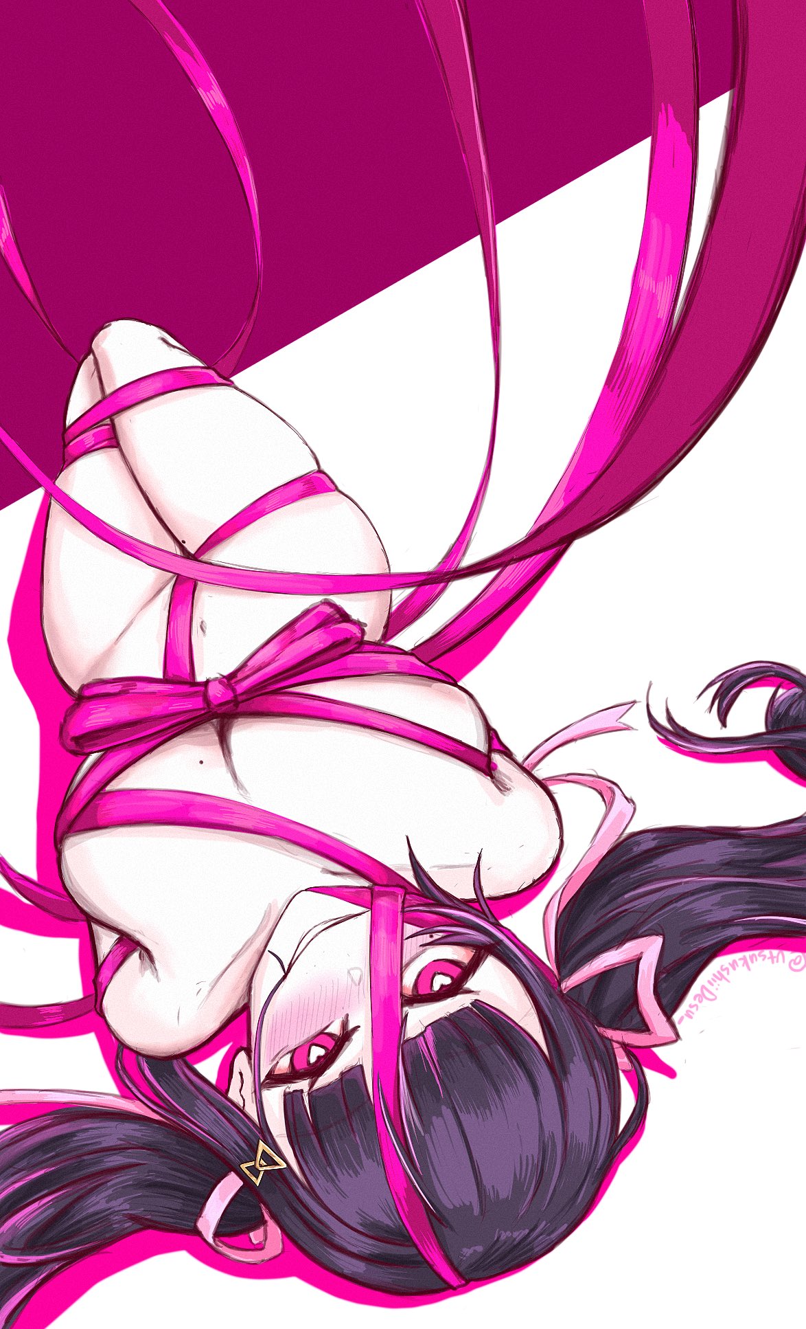 1girlarmpit creaseartist namebare armsbare legsbare shouldersbdsmbondageboundbreastscompletely nudecrazy eyescrazy smiledutch anglee.g.o (project moon)hair in own mouthhair ornamenthair ribbonhairpinheartheart-shaped pupilslarge breastslooking at viewerlyingnavelnudeon backpink eyesribbonribbon bondageroseate desire (e.g.o)seductive smilesimple backgroundskindentationsmilesolosymbol-shaped pupilsteeththighstwintails