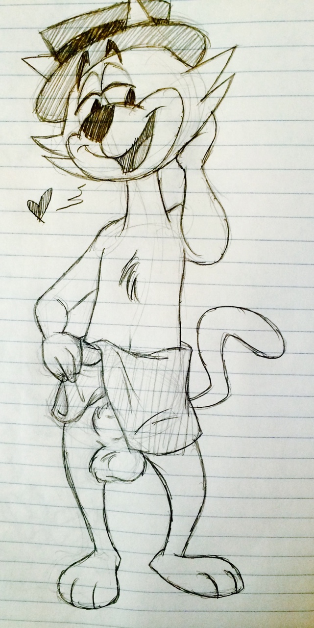 nanao naru, black x pink, striped, animal ears, black hair, breasts, cat ears, cat tail, multiple views, open fly, red eyes, shorts, tail, thighhighs, underboob, unzipped