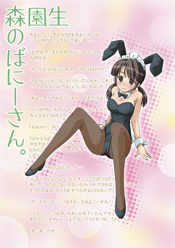 00s1girlanimal earsblack hairblushbowbowtiebreastsbrown eyescleavagedetached collarfake animal earsfemale focushigh heelslong hairmaid headdresspantyhoseplayboy bunnyrabbit earsrabbit tailsolospread legstailtext focustwintailswrist cuffs