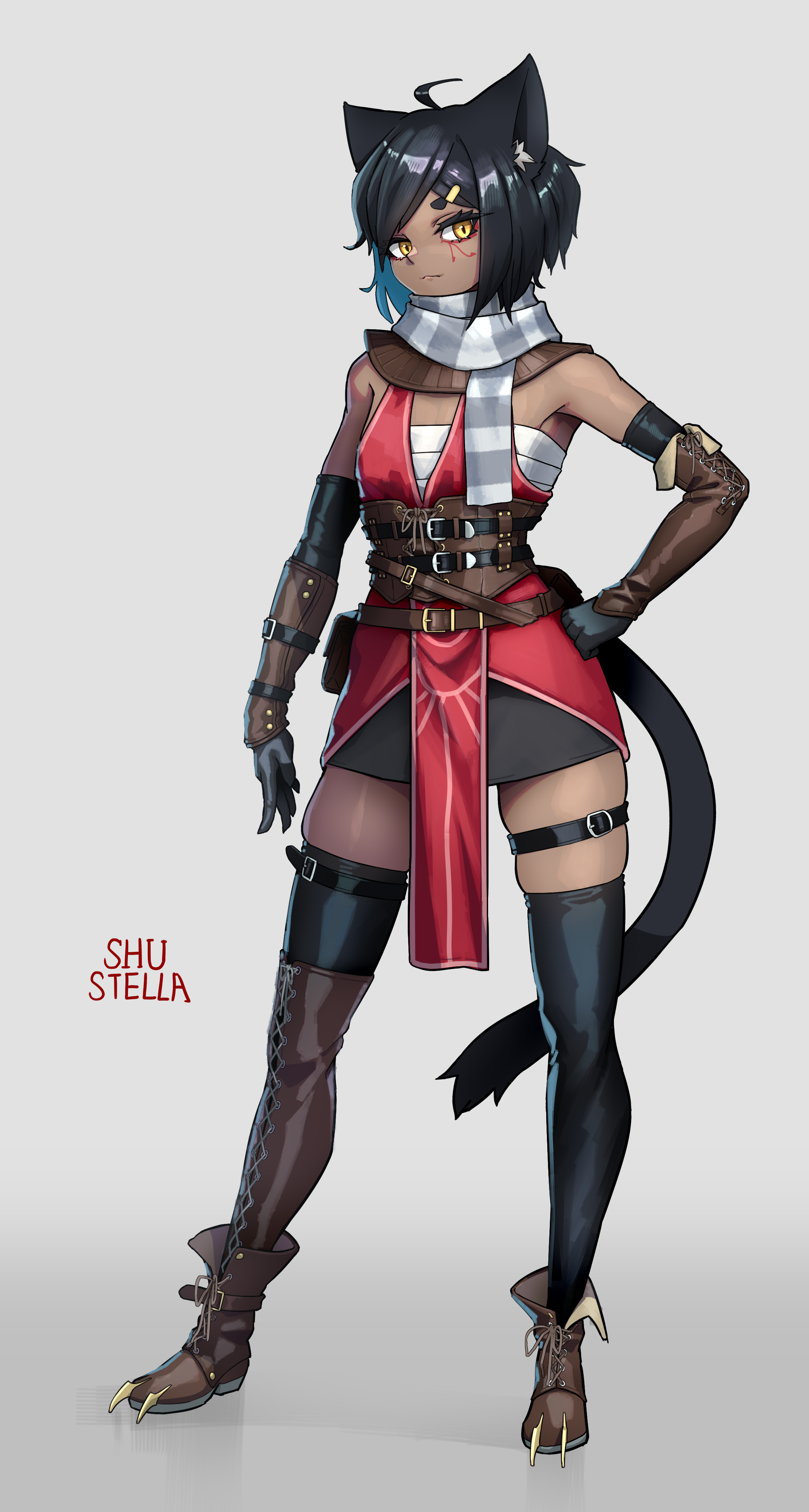 1041 (toshikazu), cassandra alexandra, soul calibur, soulcalibur, soulcalibur iv, 1girl, armor, breasts, cleavage, female focus, large breasts, necktie, pink necktie, solo, thighhighs