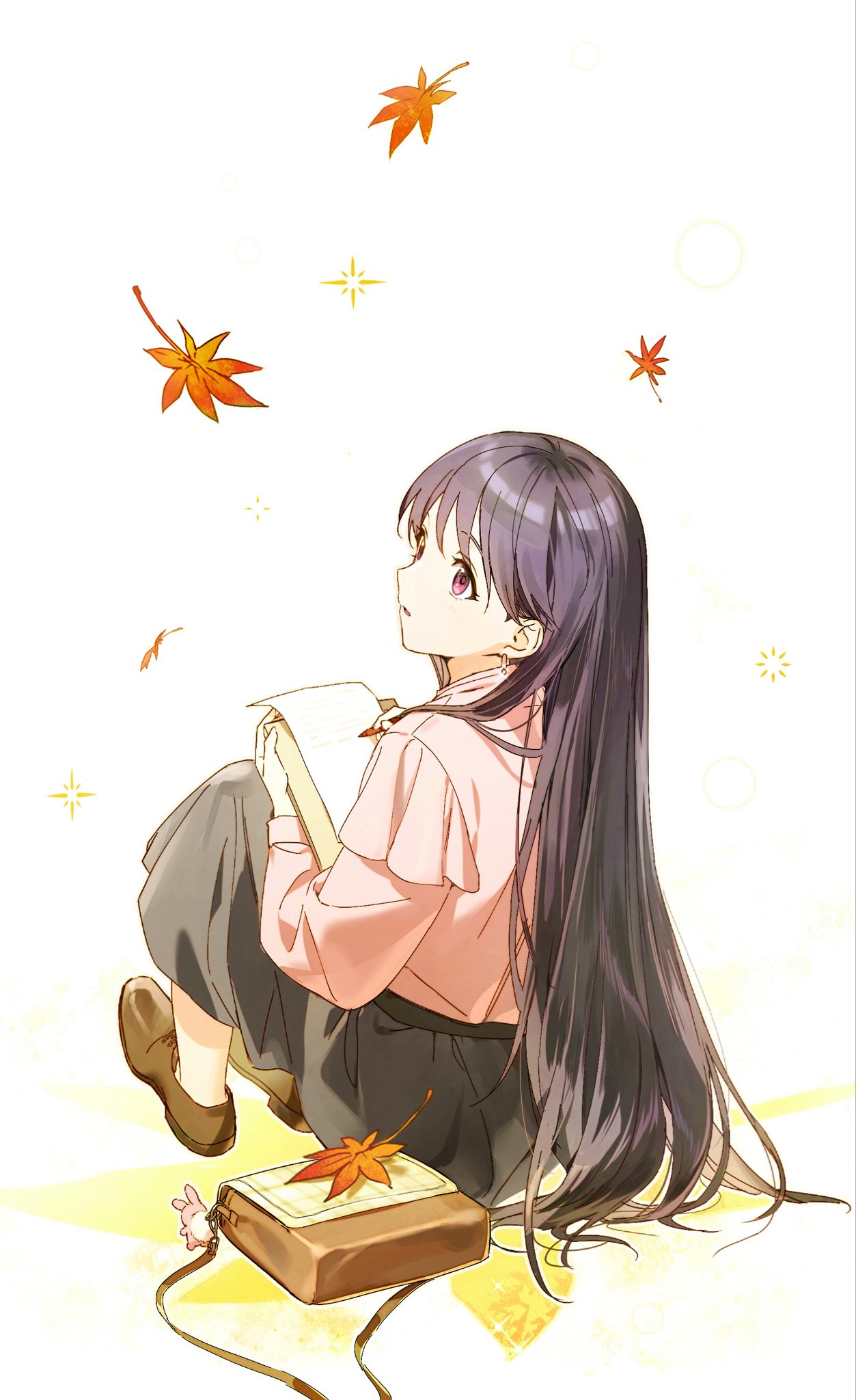 siokazunoko, nishino asuka, chitose-kun wa ramune bin no naka, highres, 1girl, blue skirt, book, closed mouth, holding, holding book, looking at viewer, necktie, purple eyes, school uniform, shirt, short hair, skirt, smile, white hair, white shirt