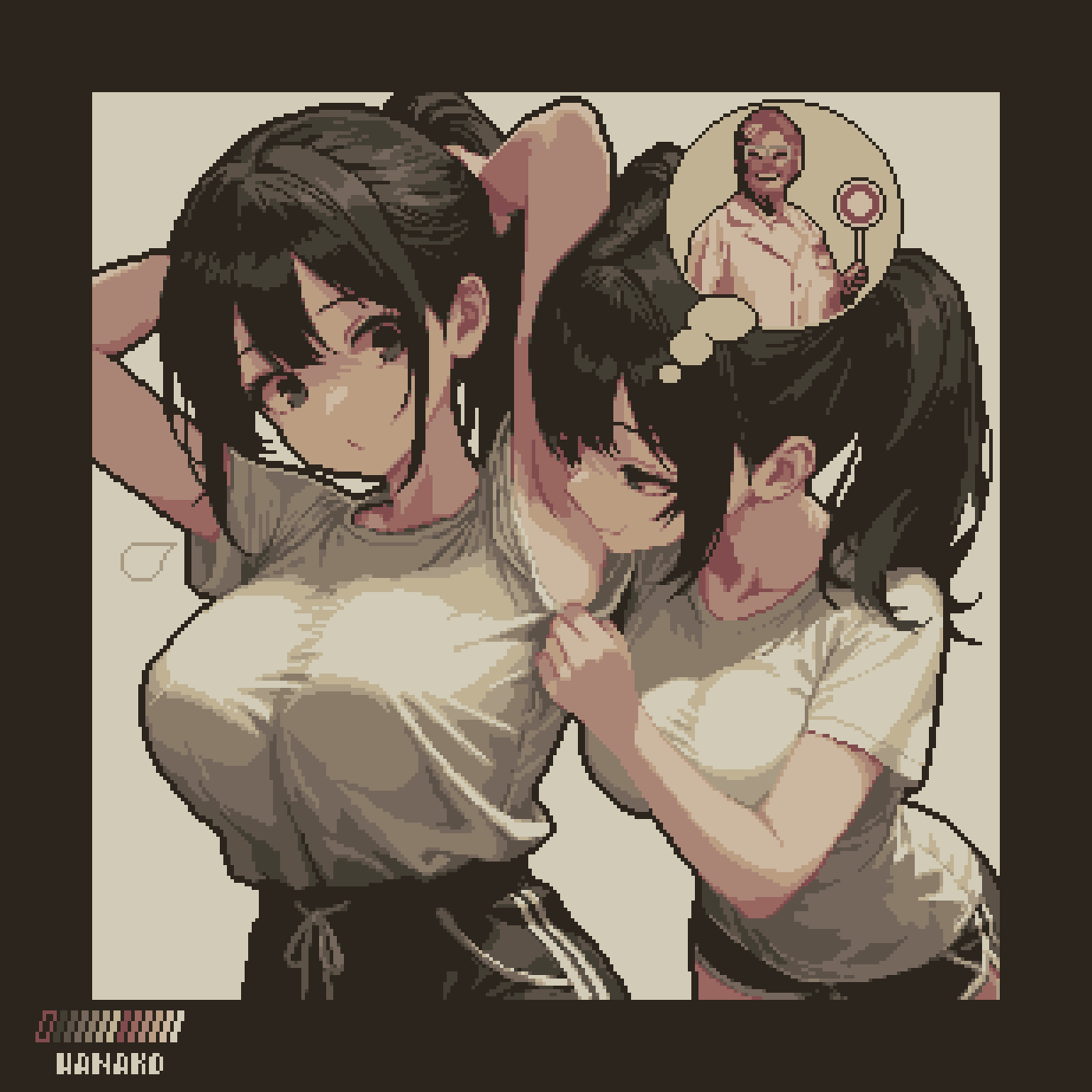:32girlsadjusting hairarmpit focusarmpitsarms behind headarms upblack hairbreastscollarbonedolphin shortsdouble-parted bangsgrabbing another's shirthair between eyeshuge breastslong hairlooking at anothermultiple girlsneckpixel artponytailshirtshirt tucked inshort sleevesshortssidelockssimple backgroundsmellingsmelling armpitspeech bubblesportswearthought bubbletwintailsuntucked shirtwhite shirt