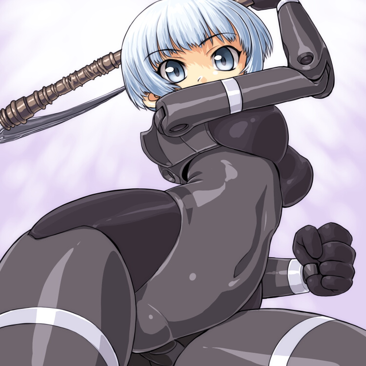 10s1girlblue eyesblue hairbodysuitdoll jointsfemale focuship focusjointsmatching hair/eyespantyhosescytheshort hairsolothighhighswide hips