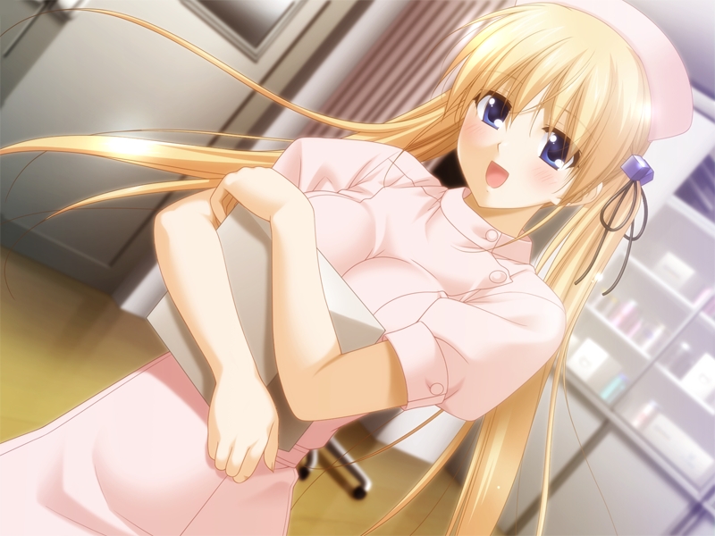 1girlblonde hairblue eyesclipboardcube hair ornamentdutch anglefemale focushair ornamentlong hairmedicalnursesolotwintails