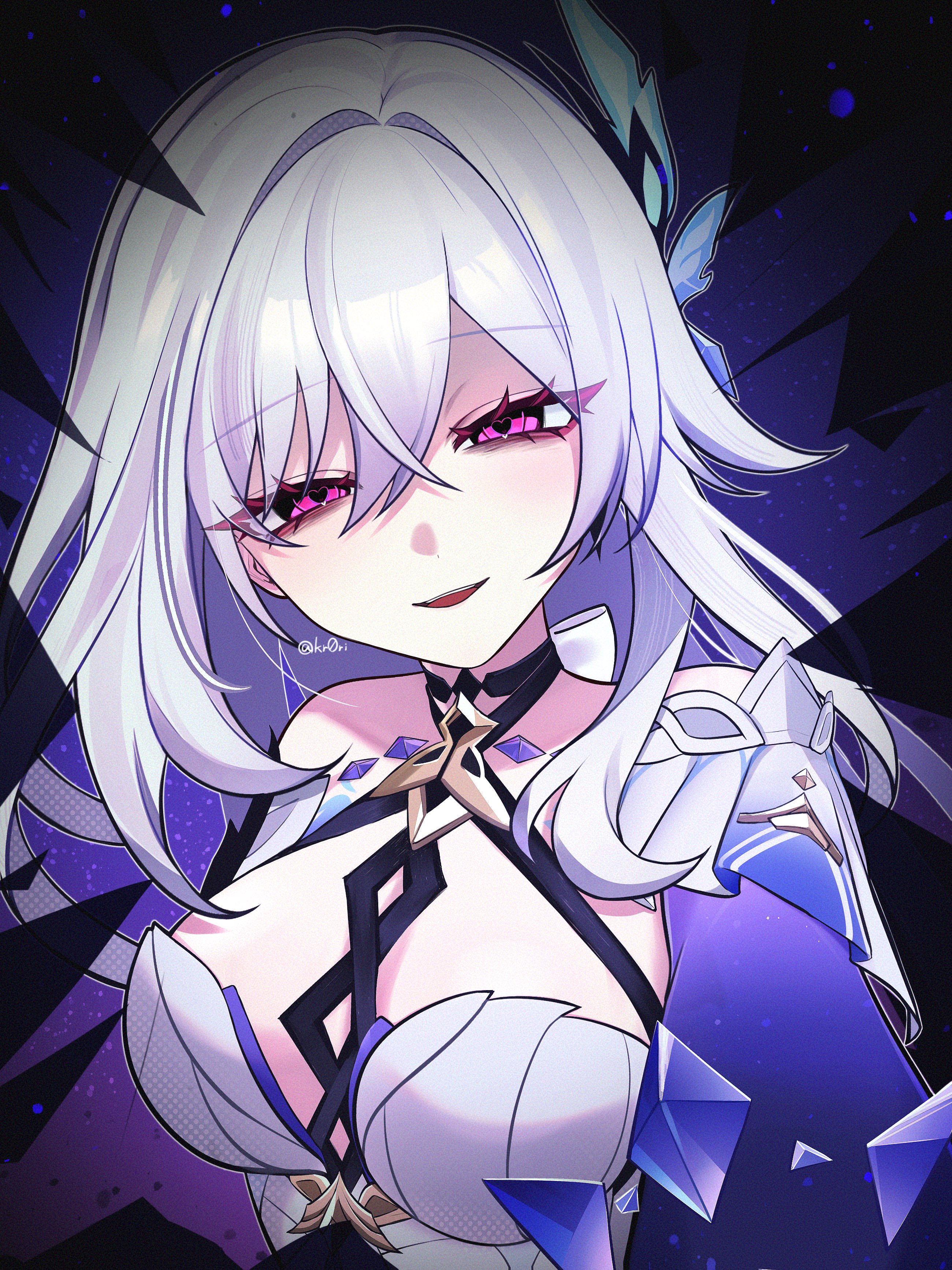 bk (barakoodra), original, art fight attack, 1girl, blue eyes, blue hair, borrowed character, breasts, fang, gift art, head wings, looking at viewer, low twintails, open mouth, short twintails, twintails, wings, zoom layer
