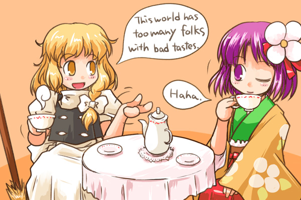 shikina (mochigushi ), warrior of light (ff14), final fantasy, final fantasy xiv, absurdres, highres, 2girls, animal ears, bare shoulders, black choker, black ribbon, black skirt, black sweater, blonde hair, border, breasts, brown hair, bubble tea, cat ears, cat girl, cat tail, choker, collared shirt, cup, disposable cup, drinking straw, facial mark, hair ribbon, holding, holding cup, long hair, medium breasts, miqo'te, multiple girls, off-shoulder shirt, off-shoulder sweater, off shoulder, one eye closed, open mouth, orange eyes, outdoors, pink shirt, ponytail, red eyes, ribbon, shirt, signature, skirt, sleeveless, sleeveless shirt, sweater, tail, whisker markings, white border, white shirt, white skirt
