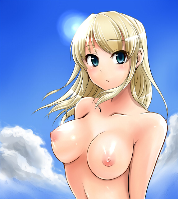 1girlblonde hairblue eyesbreastsdayfemale focuslong hairmedium breastsnipplespuffy nipplesskysolo