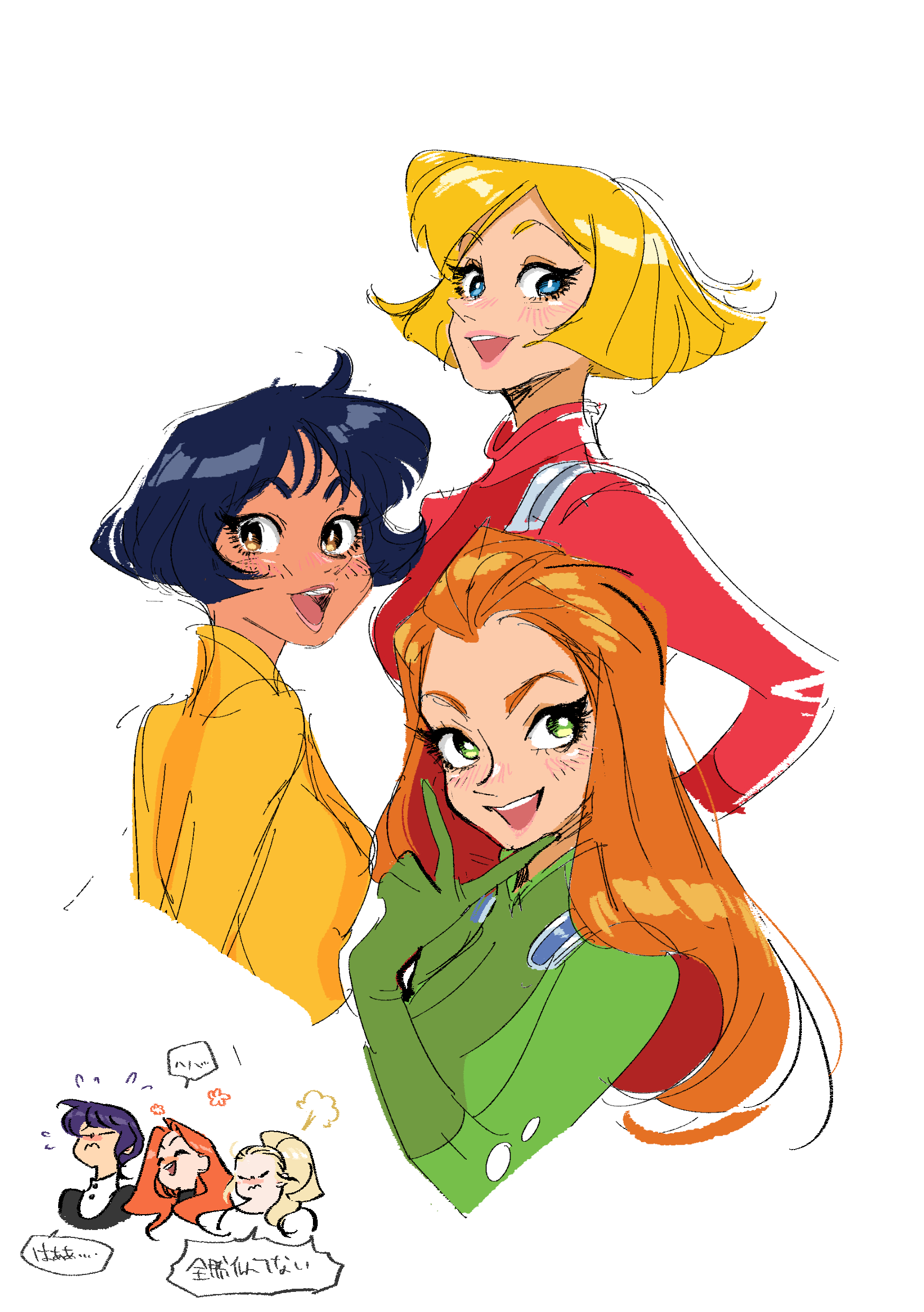 3itches6+girlsblack hairblonde hairblue eyesblushbodysuiteyelashesflying sweatdropsgreen bodysuitgreen eyeshand on own hiphigh ponytaillong hairmultiple girlsolivia (3itches)open mouthorange hairponytailpuff of airred bodysuitshort hairsimple backgroundsmiletina (3itches)vivian (3itches)white backgroundyellow bodysuityellow eyes