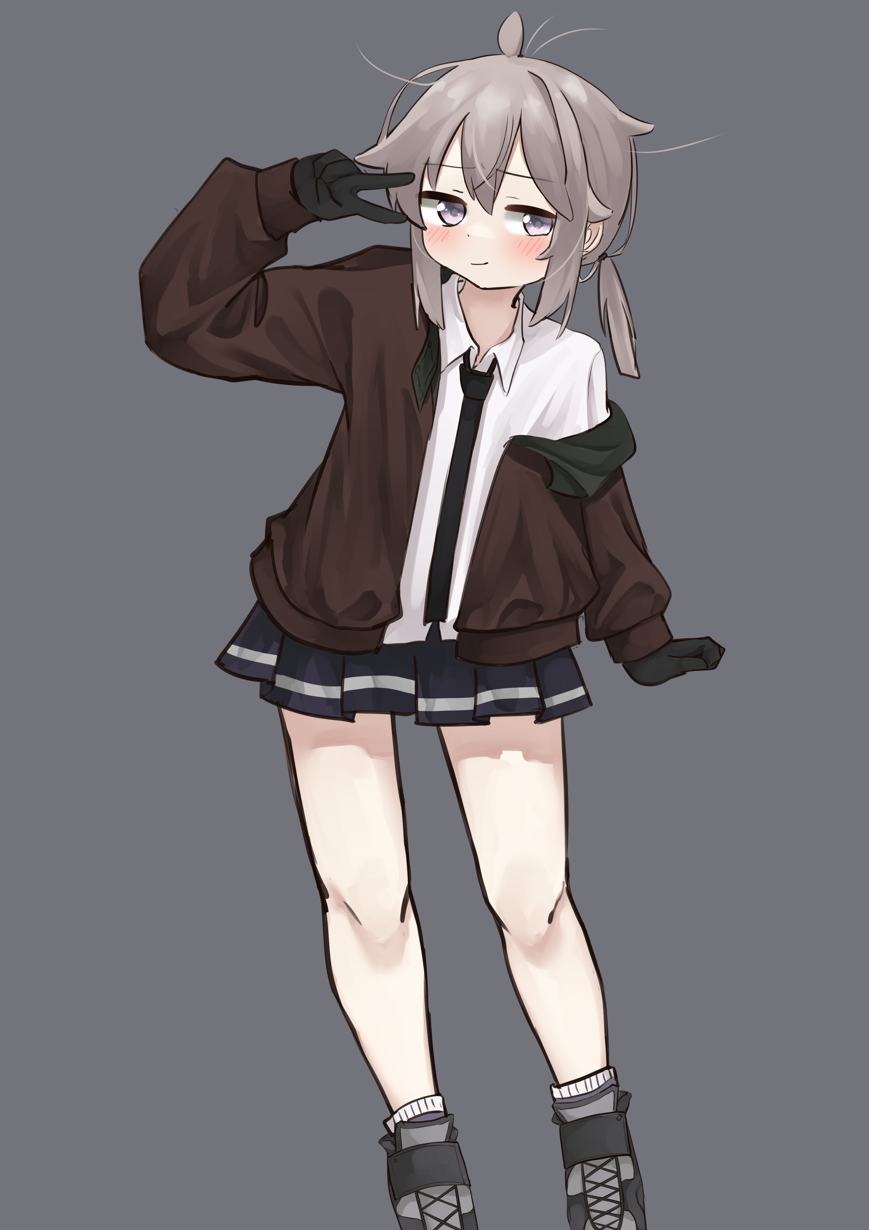 1girlahogeblack glovesclosed mouthcollared shirtgloveshappyjacketnecktieopen clothesopen jacketshirtsimple backgroundwhite shirt