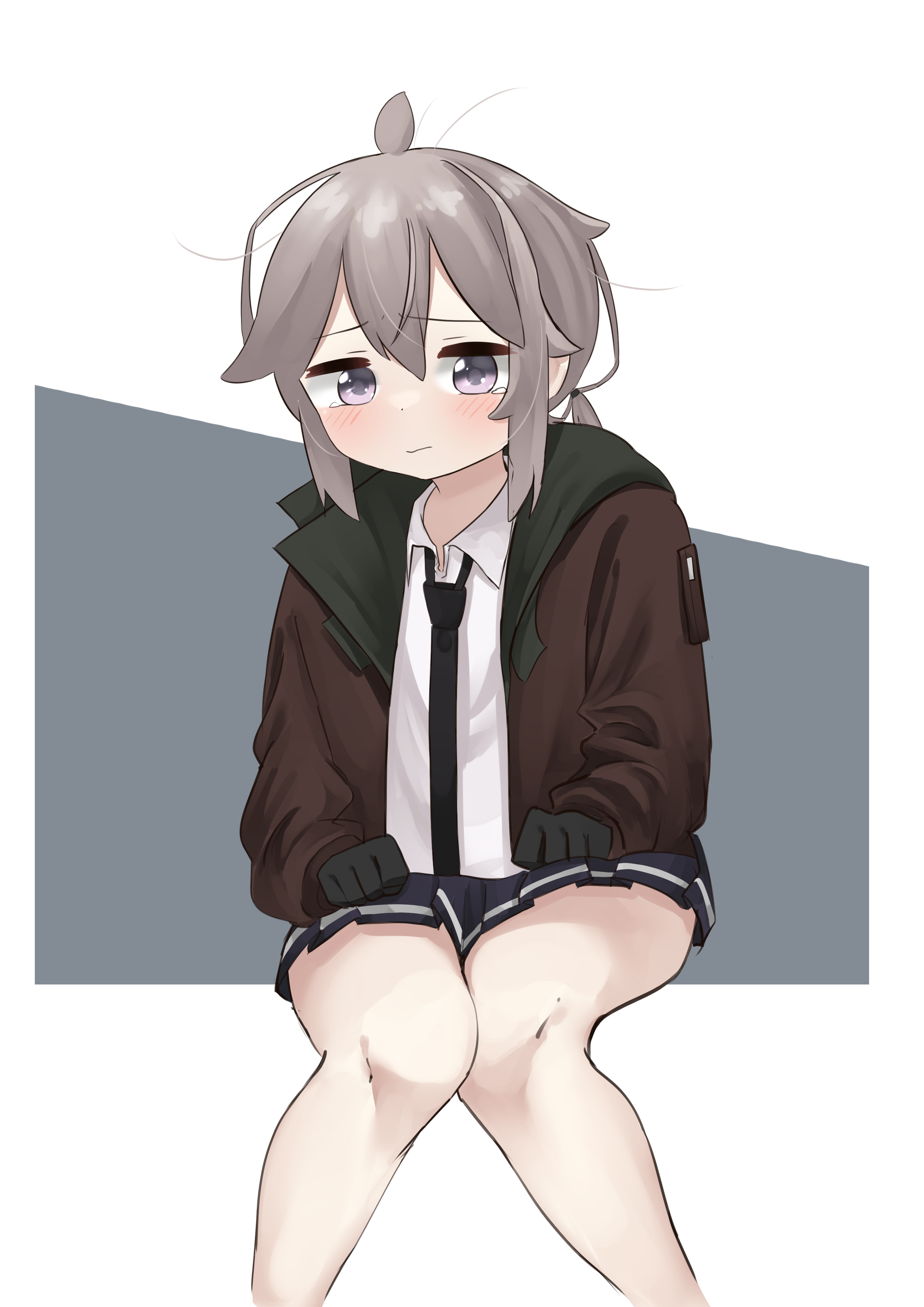 1girlahogeblack glovescollared shirtgloveshappyjacketnecktieopen clothesopen jacketshirtsimple backgroundtearing upwhite shirt