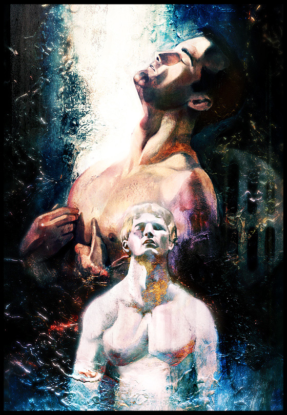 coincoinco, fuji shuusuke, mizuki hajime, tennis no ouji-sama, highres, 2boys, black hair, blue eyes, border, brown hair, choppy bangs, close-up, collared shirt, furrowed brow, glaring, inset border, jacket, looking down, looking up, male focus, multiple boys, open mouth, parted lips, portrait, scowl, serious, shirt, short hair, simple background, split screen, sweat, unusually open eyes, v-shaped eyebrows, very sweaty, wavy hair, white background, white border, white jacket, wispy bangs