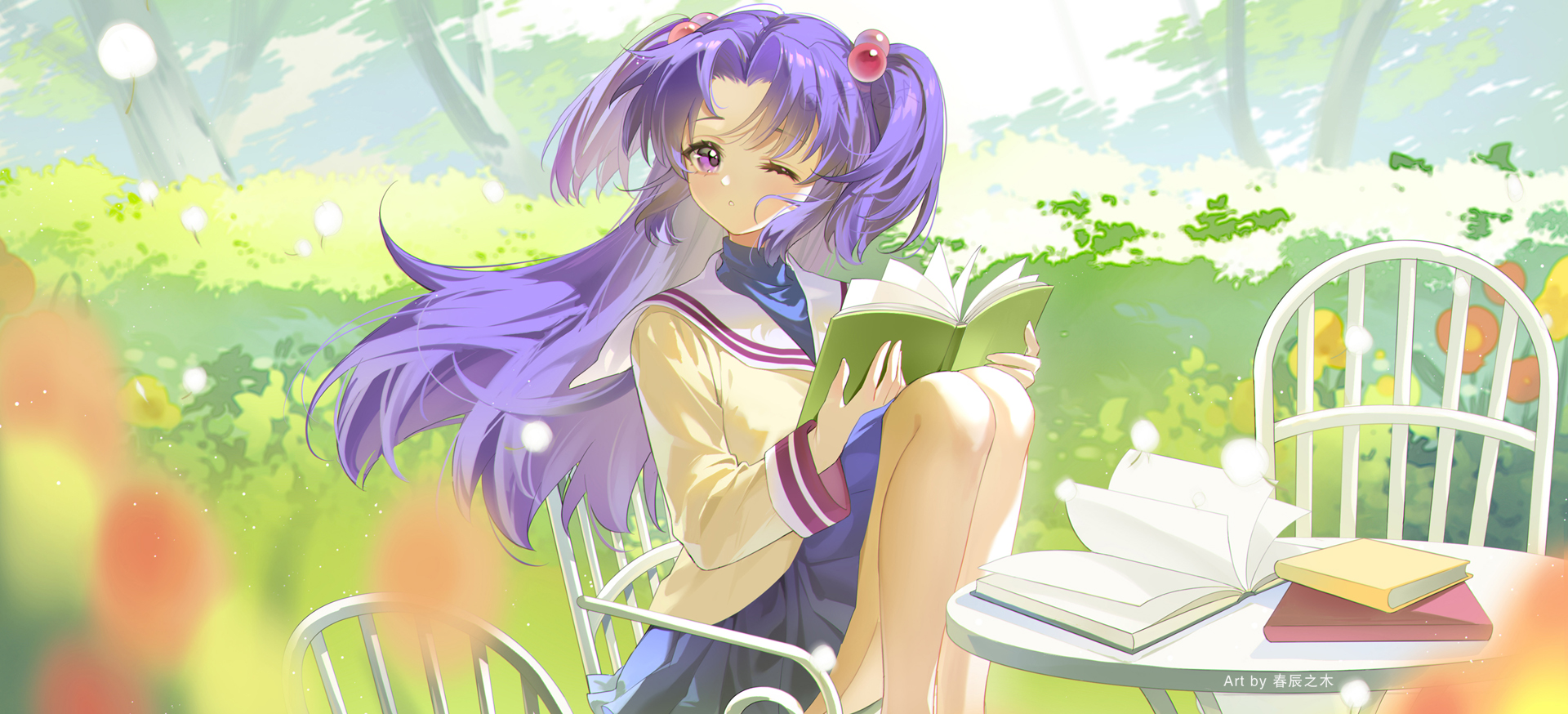 :o1girlblue shirtblue skirtblurryblushbookchairdaydepth of fieldeyelashesfeet out of framefloating hairflowergardenhair bobbleshair ornamenthands uphikarizaka private high school uniformholdingholding bookjacketknees uplong hairlong sleeveslooking at viewerminiskirton chairone eye closedopen bookorange floweroutdoorsparted lipspleated skirtpurple eyespurple hairschool uniformserafukushirtsignaturesittingskirtsolotableturtleneckturtleneck shirttwo side upvery long hairwide sleeveswindyellow floweryellow jacket