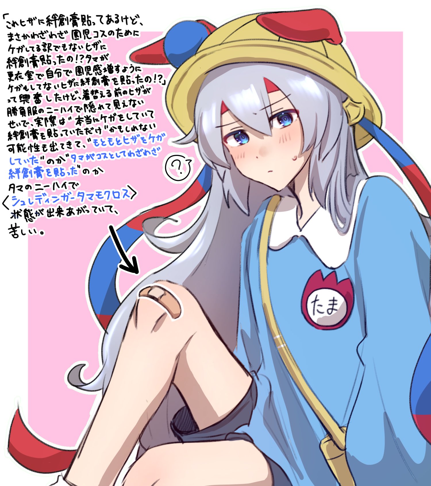 1boyalternate costumeanimal earsbagbandaidbandaid on kneebandaid on legblue eyesblue hairbandblue shirtblue shortsblue sweaterblushclosed mouthear coversear ornamentears through headweargrey hairhair between eyeshairbandhatheadbandhelmethorse earshorse girlimymemine 777kindergarten bagkindergarten uniformlong hairlong sleeveslooking at viewerred headbandschool hatschool uniformshirtshortsshoulder bagsolospeech bubblestriped clothesstriped hairbandsweatdropsweatervery long hairyellow hatyellow helmet
