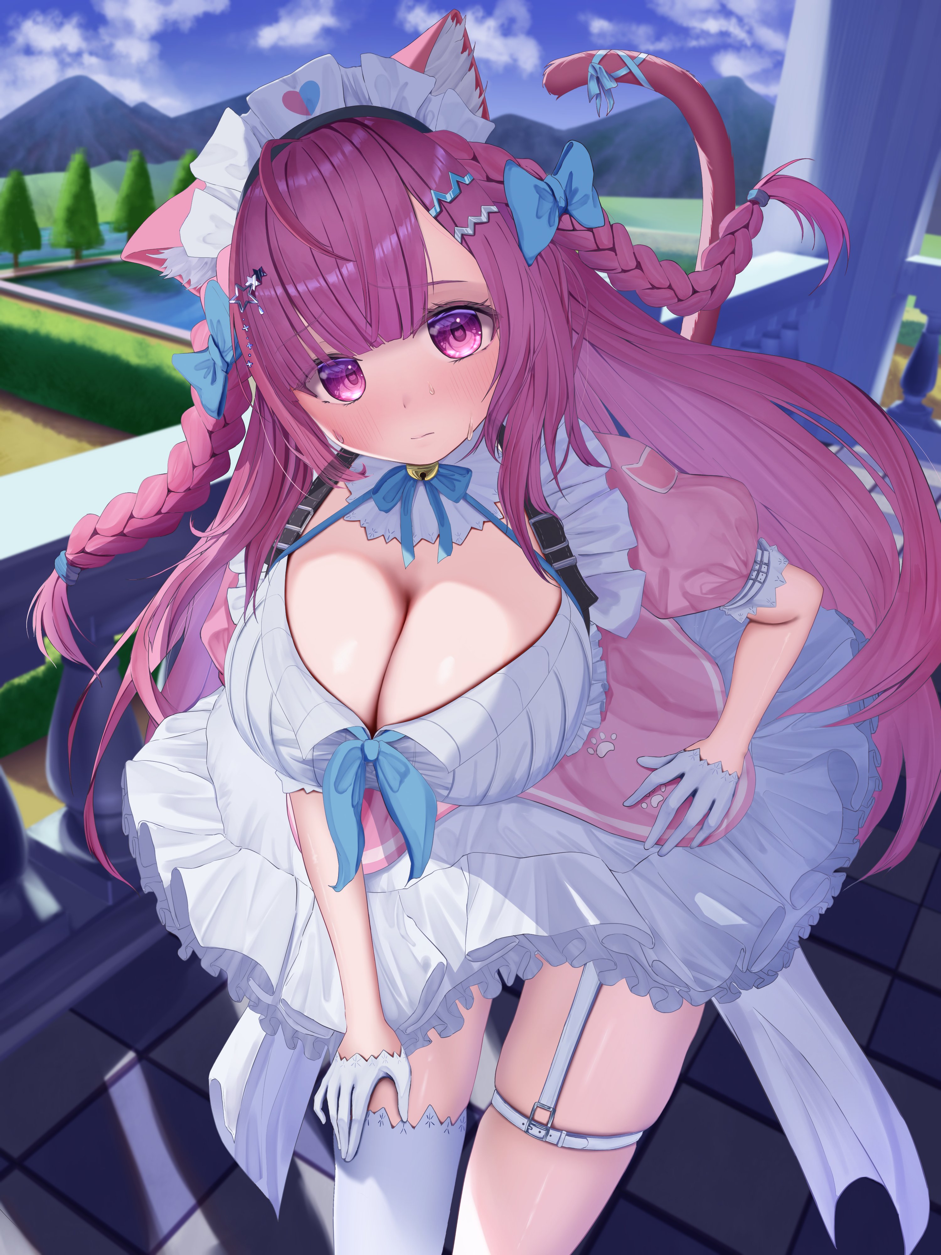 1girlahogeanimal earsanimal printbellbeltblue bowblue ribbonblue skyblushbowbreastsbur99ercat earscat girlcat hair ornamentcat printcat tailcheckered floorcleavagecleavage cutoutclosed mouthclothing cutoutcloudcloudy skydaydressgarter strapsgloveshair bowhair ornamenthairclipheartheart printhuge breastsjingle bellleaning forwardlong hairlooking at viewermaidmaid headdressmountainous horizonneck bellneck ribbonpaw printpink dresspink eyespink hairpink tailribbonshort sleevessingle garter strapsingle thighhighskysolostar (symbol)star hair ornamentsuspenderssweattailtail ornamenttail ribbonthigh beltthigh strapthighhighsthighstreetwo side upvirtual youtuberwhite beltwhite dresswhite garter strapswhite gloveswhite thighhighs
