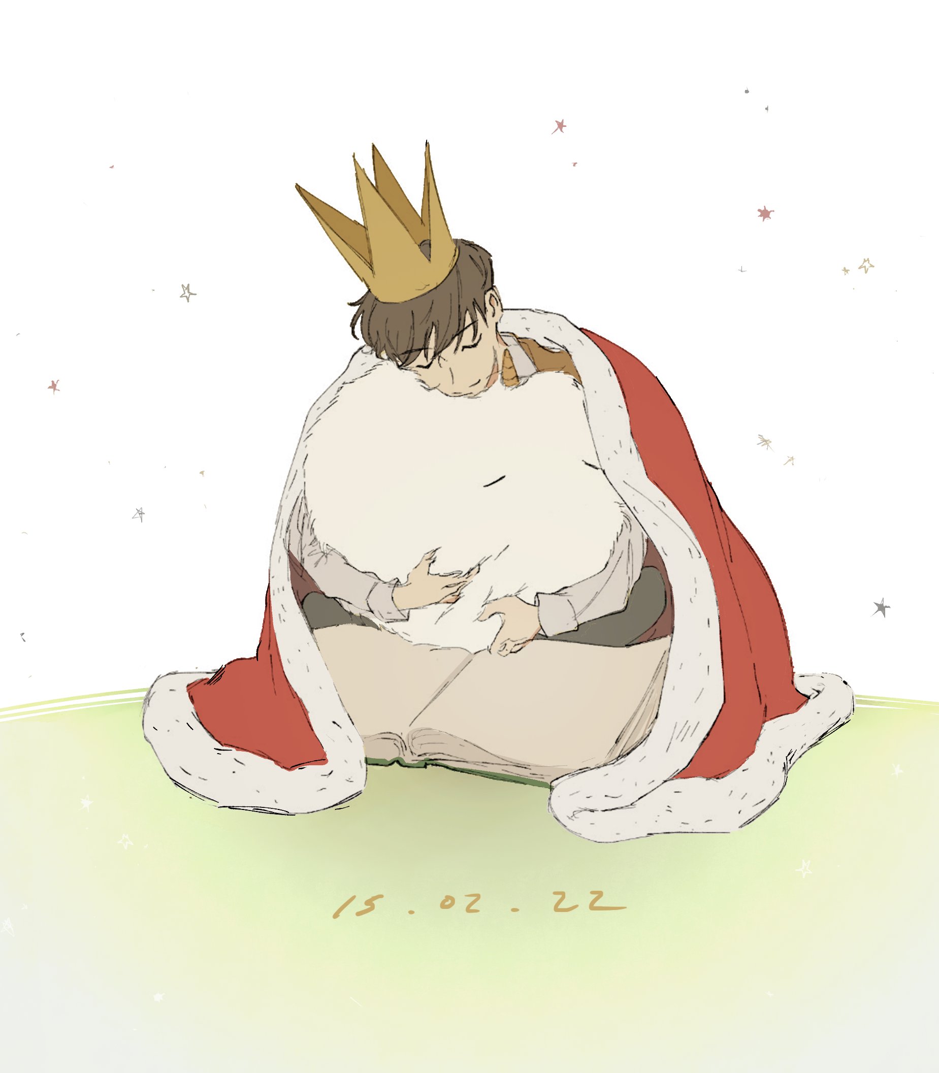 1boyanimalanimal hugbookbrown hairbrown vestcapeclosed eyescrownfull bodyfur trimhugoldest dreamopen bookoversized objectred capeseizashirtshort hairsittingsmilevestwhite shirt