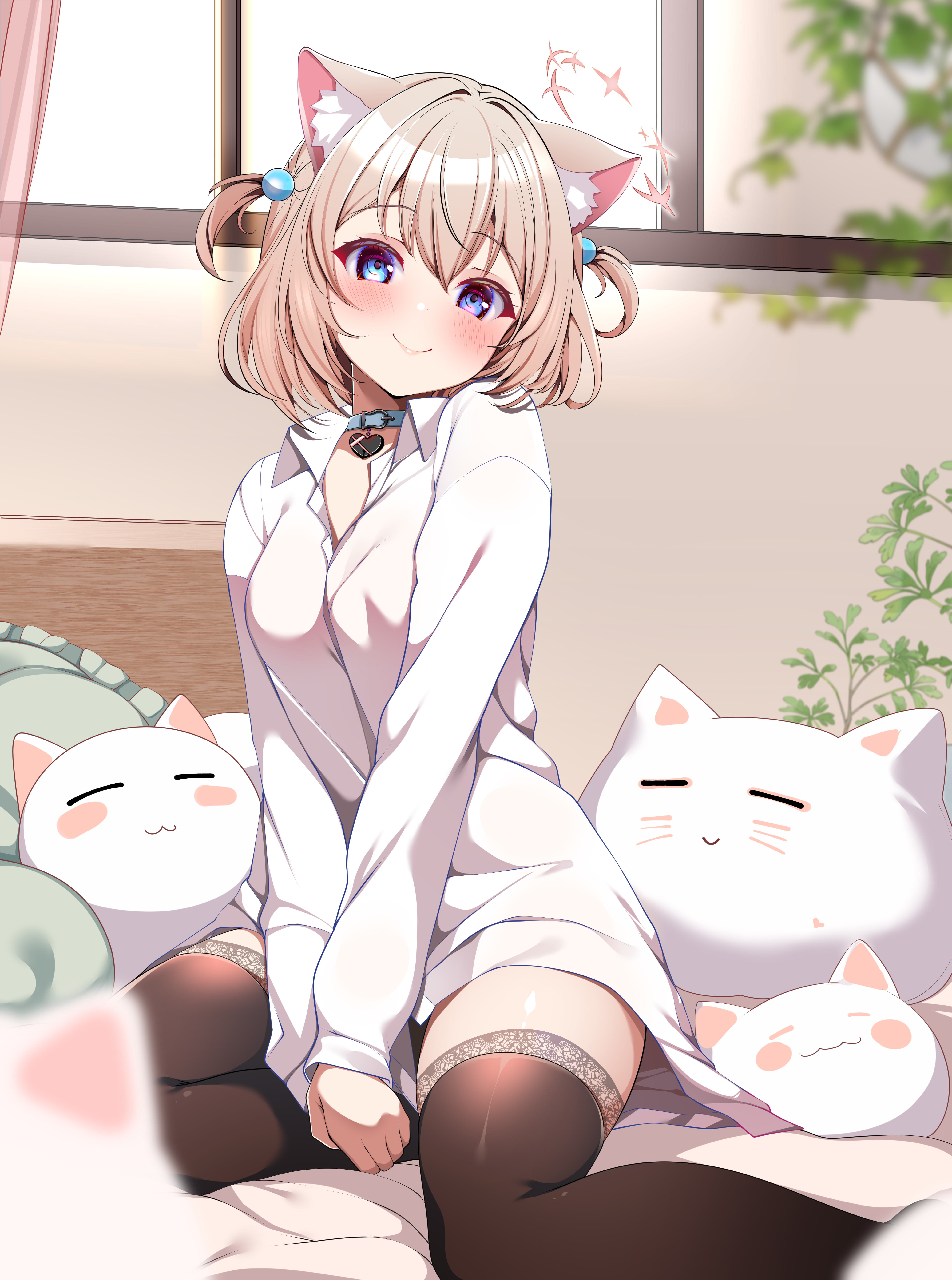nekomiya nono, charamel, yotsunoha, highres, official art, scan, 00s, 1girl, adjusting clothes, adjusting legwear, ahoge, bow, bow bra, bra, brown eyes, brown hair, chair, dressing, feet, female focus, legs, no shoes, panties, pantyshot, school uniform, serafuku, short hair, sitting, smile, socks, solo, stuffed animal, stuffed penguin, stuffed rabbit, stuffed toy, teddy bear, thighhighs, underwear, white bra, white panties, white socks, white thighhighs