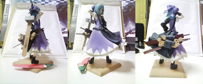 kenkou cross, goblin (monster girl encyclopedia), monster girl encyclopedia, hard-translated, official art, third-party edit, translated, 1girl, blue eyes, blush, character profile, club (weapon), earrings, english text, fang, female focus, female goblin, flat chest, gloves, goblin, harem pants, horns, jewelry, midriff, monster girl, navel, open mouth, pants, petite, pigeon-toed, pointy ears, red hair, sandals, see-through clothes, solo, twintails, weapon