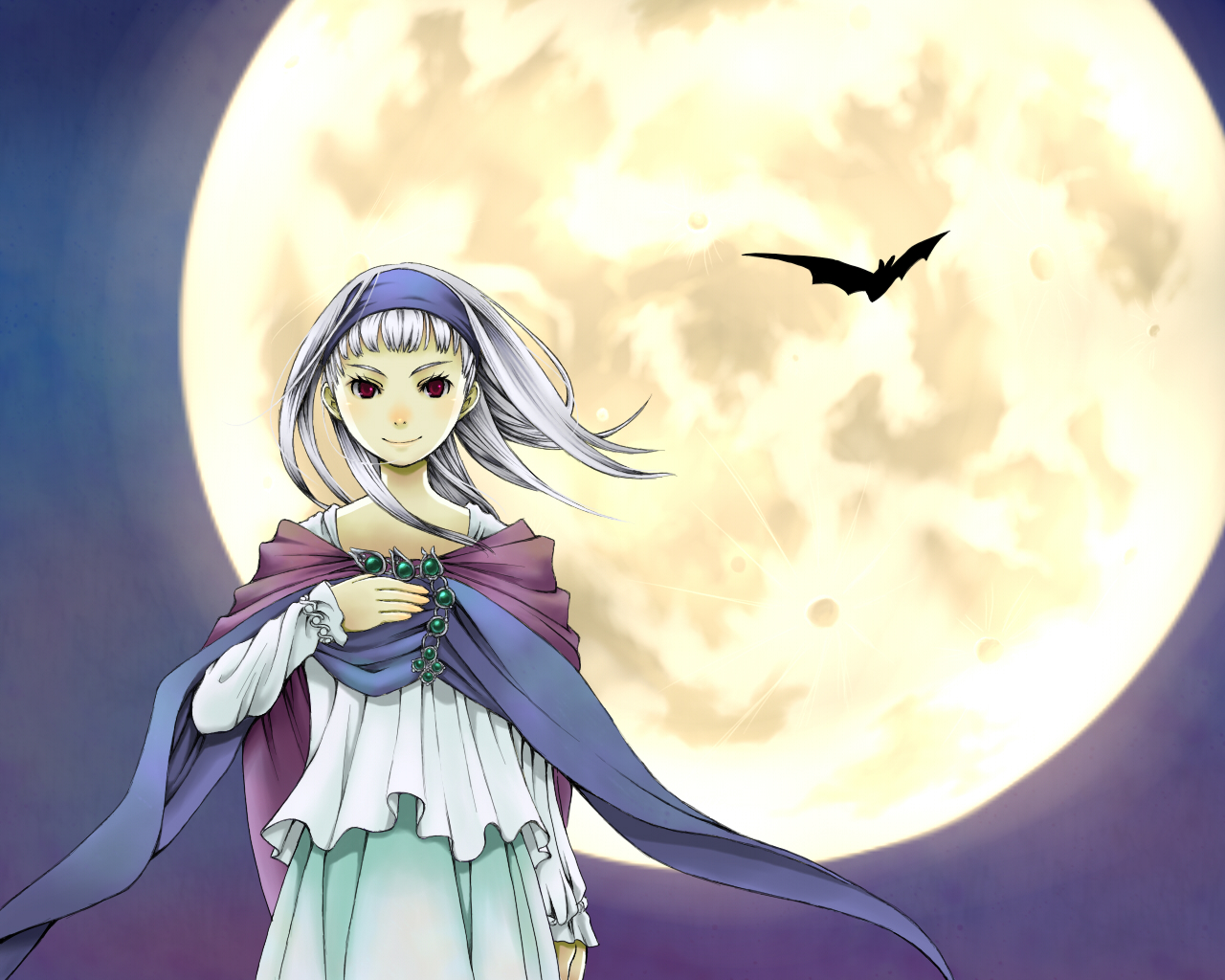 kuuron (moesann17), puzzle & dragons, absurdres, highres, 1girl, apron, blonde hair, braid, breasts, coif, colored skin, dress, elizer (p&d), frilled apron, frills, hair between eyes, horns, low twin braids, maid, maid apron, maid headdress, multicolored hair, own hands together, puffy sleeves, simple background, solo, streaked hair, twin braids, white apron, white background, white hair, white skin, yellow eyes