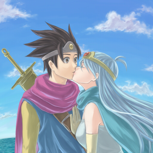 1boy1girlblue haircapecircletclosed eyescoupleelbow glovesglovesheterokisslong hairswordweapon