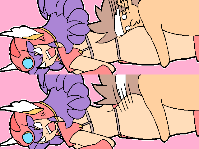 wuni (dkadireks 6974), vault boy, fallout, absurdres, commentary, highres, symbol-only commentary, 1boy, 1other, arm behind head, armpits, blonde hair, chastity cage, cowboy shot, disembodied hand, gameplay mechanics, gun, huge nipples, indoors, navel, open clothes, smile, standing, trap, vault suit, weapon