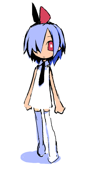 1girlbare shouldersdressfemale focushair over one eyenecktiered eyesribbonshort dresssolothighhighswhite thighhighs