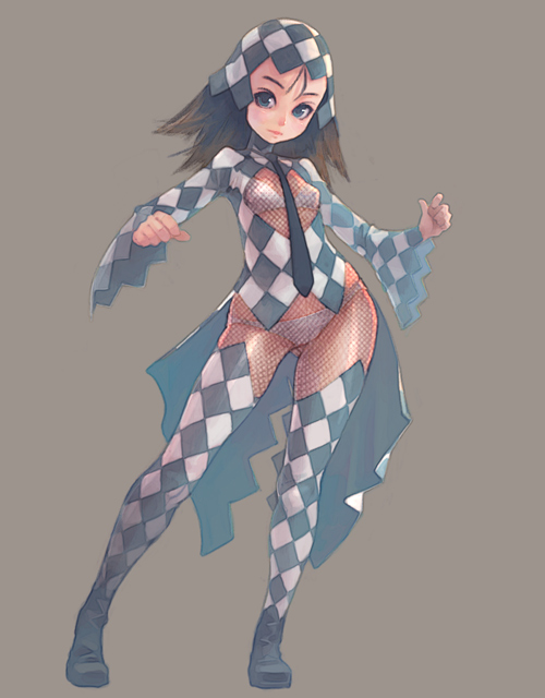 1girlbrabrown haircheckered clothescheckered legwearfemale focusfishnetsfull bodylingerienecktiepantiespatterned legwearsimple backgroundsolothighhighsunderwear