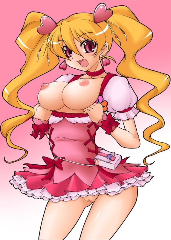 00s1girlblonde hairbreastschokerdrill hairearringsfemale focushair ornamentjewelrylarge breastslong hairmagical girlnipplesno pantiespink eyespussyribbonsmilesolotwintailsuncensored