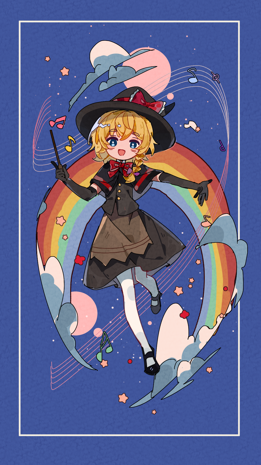 :d1girlapronblack capeletblack glovesblack hatblack shoesblack skirtblack vestblonde hairblue backgroundblue eyesbowbowtiebraidbrown aproncapeletcloudconductor batonelbow glovesfull bodygloveshair bowhathat bowlooking at viewermary janesmusical staffopen mouthpantyhosepurple bowrainbowred bowred bowtieshoesshort hairside braidsingle braidskirtsmilesolovestwaist apronwhite pantyhosewitch hat