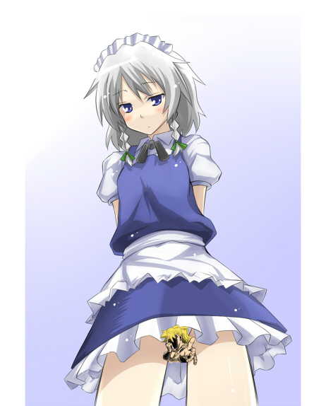 1girlarms behind backblue eyesblushcensoredcharacter censorconvenient censoringfemale focusgradient backgroundmaidnovelty censorsolo