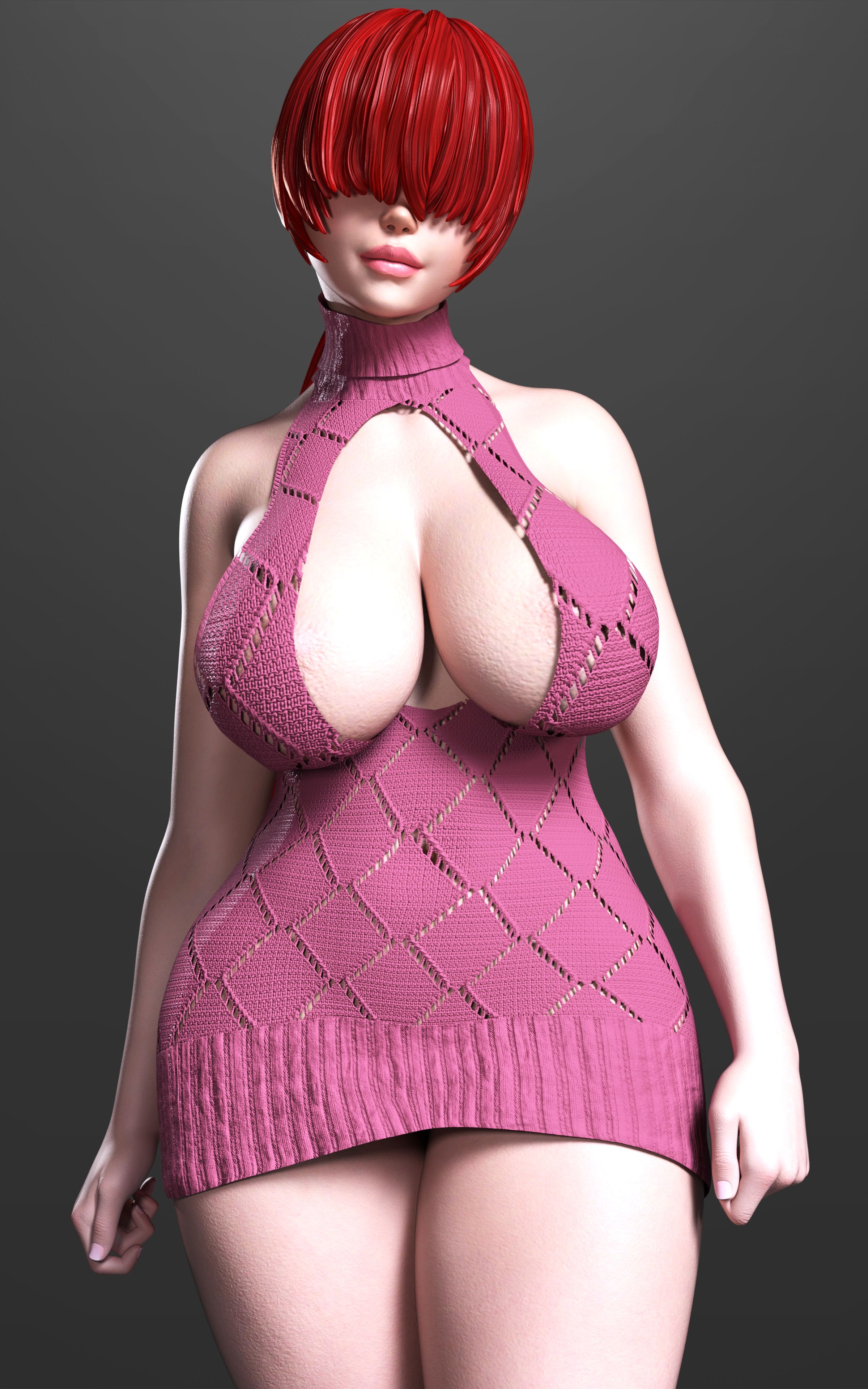 1girlbreastsclothing cutoutcurvyfemale focushuge breastslarge breastslong hairnipple slipnipplespale skinponytailred hairsweaterthick lipswide hips