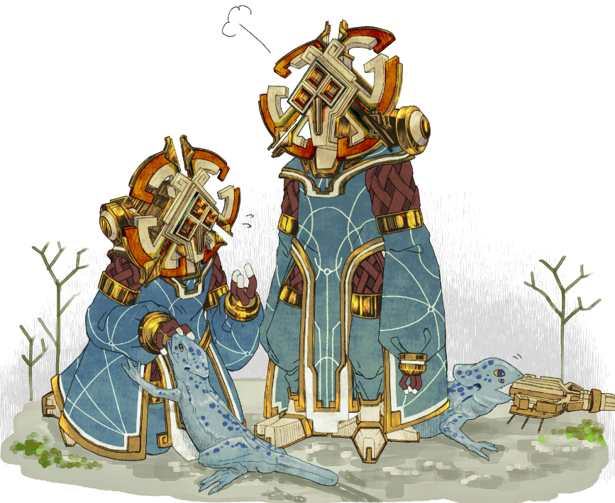 esist hourai, iwanaga ariya, yuiman asama, fossilized wonders, touhou, highres, black shirt, brown hair, dialogue box, half mask, mask, multiple girls, red eyes, shirt, simple background, sweat, torii, white hair