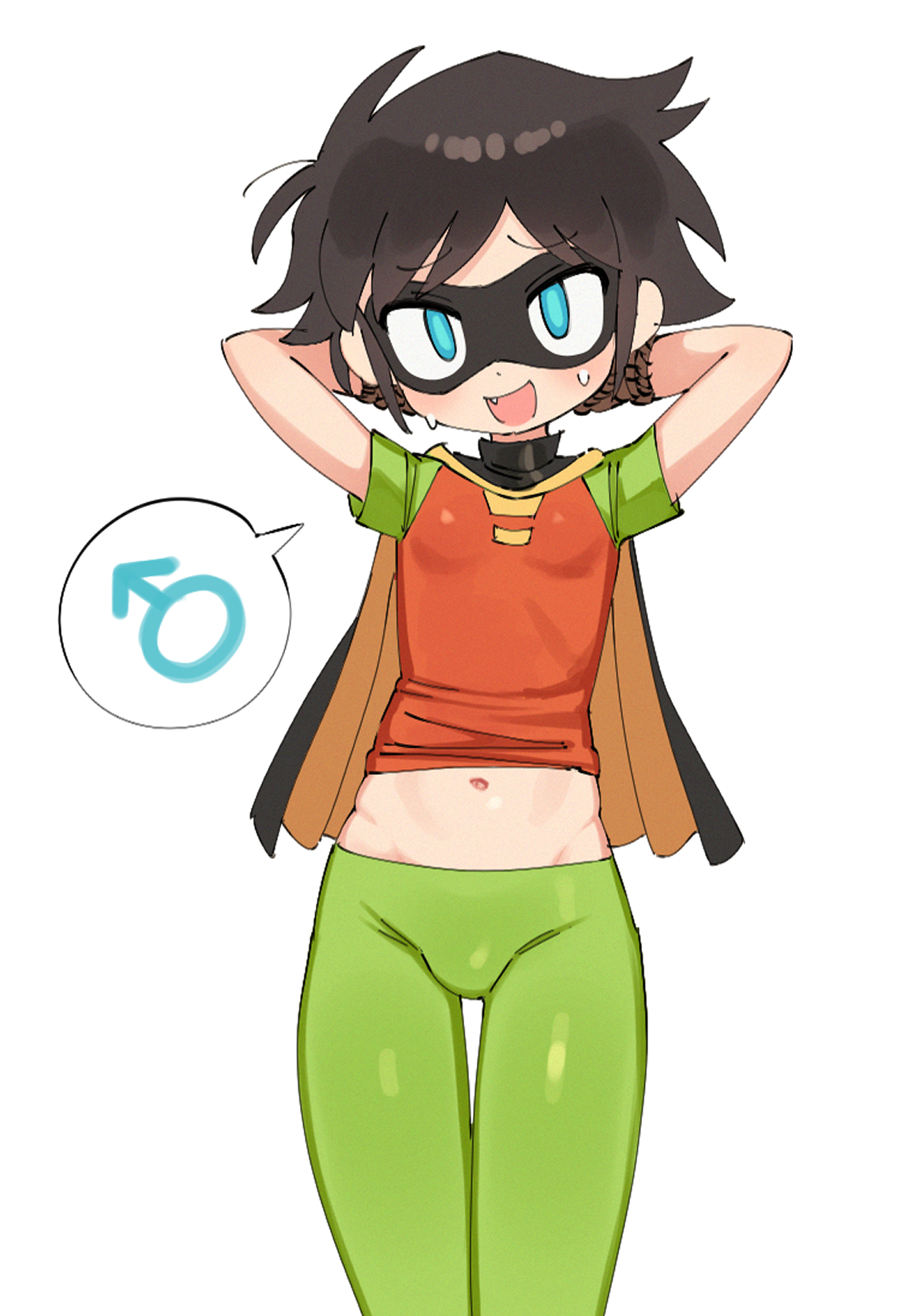 mystery (kpop demon hunter), zoey (kpop demon hunters), kpop demon hunters, 1boy, 1girl, black hair, breasts, closed eyes, crop top, hair over eyes, hand on another's shoulder, navel, nervous, nervous sweating, purple hair, shiny skin, spoken squiggle, squiggle, sweat, turtleneck, zipper