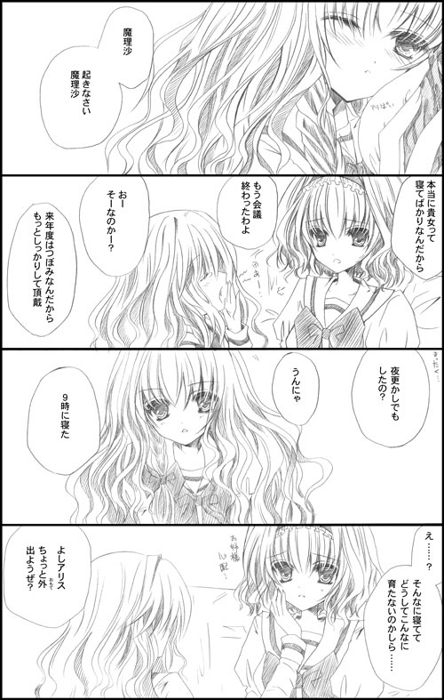 alternate costumeblushbraidcomicfemale focusgreyscalehairbandmonochromeparodyribbonschool uniformwaking up