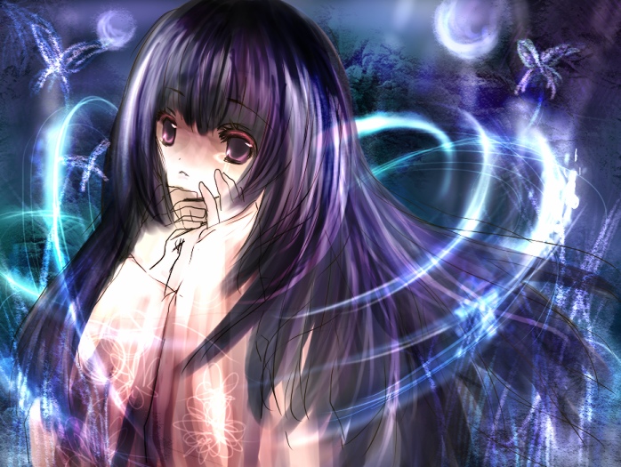 yamashita shun'ya, wild flower, absurdres, highres, 3girls, 4boys, abs, armor, ass, biceps, breasts, dragon, glasses, gun, japanese clothes, katana, long hair, mechanic, monochrome, multiple boys, multiple girls, muscular, purple theme, sword, thighhighs, underboob, weapon