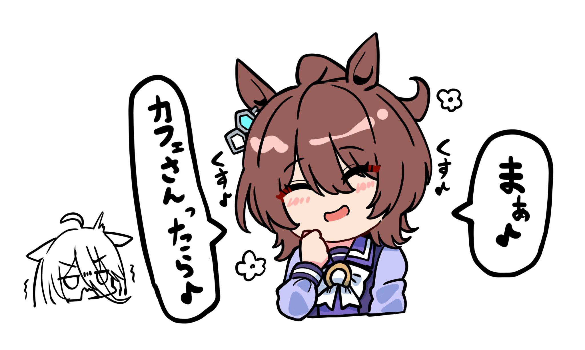:d1boy2girlsahogeanimal earsblushbowbrown hairchibiclosed eyescropped torsoears downhair between eyeshand uphorse earslong sleevesmultiple girlsopen mouthpuffy long sleevespuffy sleevespurple shirtschool uniformshirtsimple backgroundsmilesolo focustracen school uniformtremblingupper bodywavy mouthwhite backgroundwhite bow