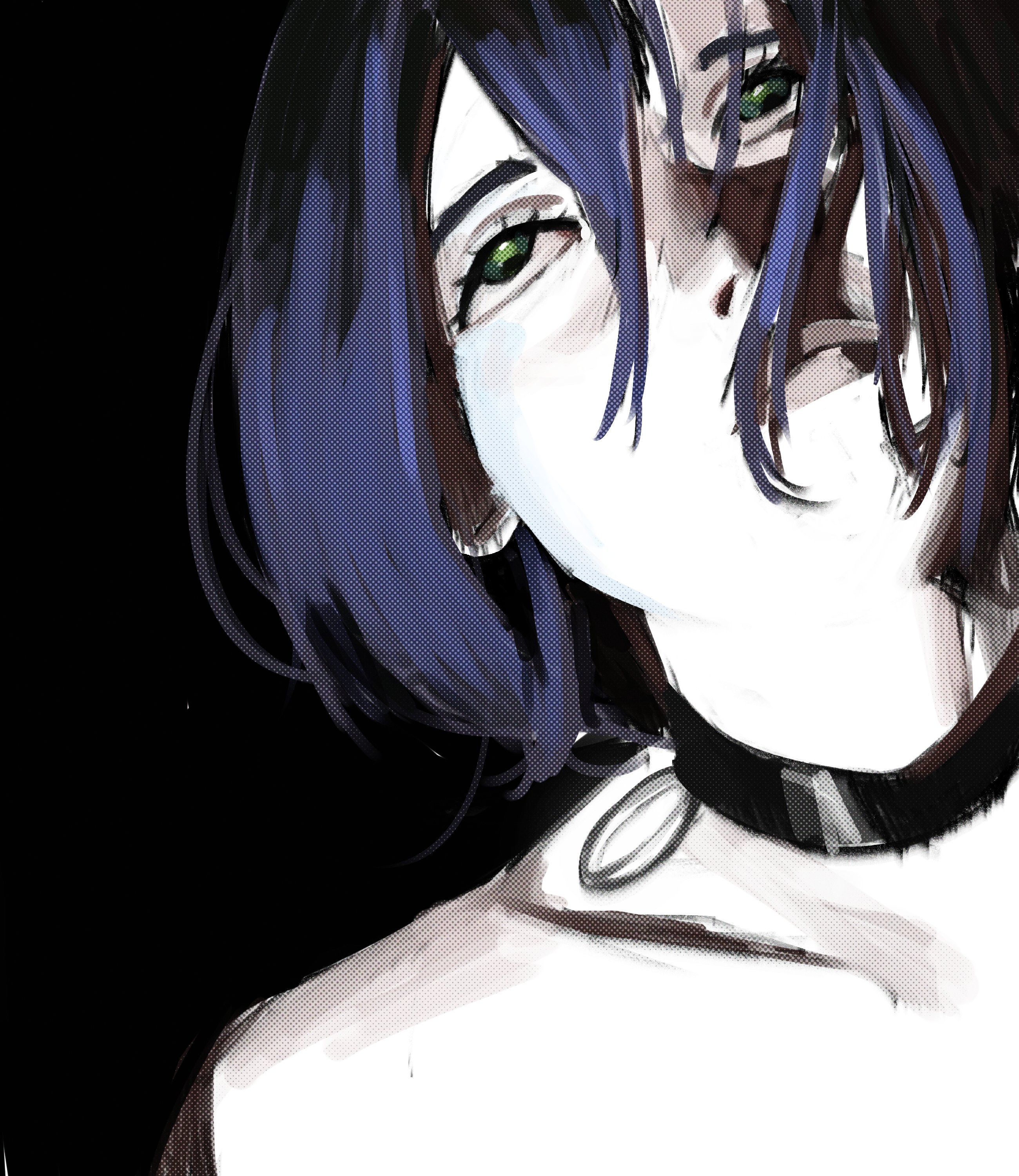 amanegi toro, original, absurdres, commentary, highres, 1girl, :d, aegyo sal, bare shoulders, beckoning, black collar, black hair, black horns, black shirt, black wings, bow, bow skirt, breasts, bright pupils, broken glass, choppy bangs, clothing cutout, collar, demon girl, demon horns, demon wings, dress, earrings, fangs, fingernails, flower, foreshortening, glass, halter dress, halterneck, happy, heart, heart-shaped pupils, heart collar, heart earrings, high-waist skirt, horns, jewelry, lace, light blush, long hair, long sleeves, looking at viewer, low wings, medium breasts, open hands, open mouth, outstretched arms, picture frame, purple eyes, purple flower, purple hair, purple ribbon, purple rose, purple skirt, ribbon, rose, see-through cleavage, see-through clothes, shirt, shoulder cutout, sidelocks, skirt, smile, solo, straight-on, symbol-shaped pupils, through medium, through painting, two side up, upper body, white background, white bow, white pupils, wings