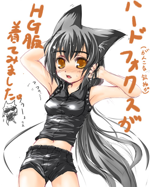 animal earscosplaycrossdressingfangfox earsgrey hairhard gay (cosplay)midriffnavelparodyshortssolosweatyellow eyes