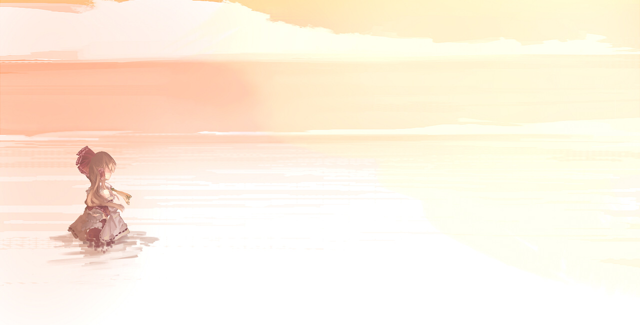 1girldetached sleevesfemale focusgradient backgroundhair ribbonjapanese clothesmikooceanoutdoorsribbonskysolowadingwhite background
