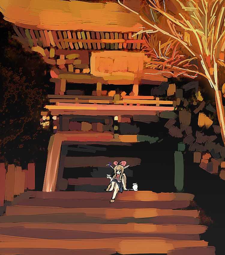 otama (umbilicalcord), animal ears, bare shoulders, blonde hair, blush, drill hair, purple eyes, solo