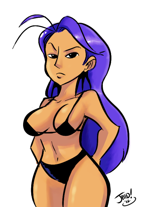 andou minawa, mahoromatic, absurdres, highres, 1girl, beach, bikini, crab, crustacean, day, female focus, flat chest, orange bikini, outdoors, panties, short hair, solo, swimsuit, topless female, underwear, wardrobe malfunction