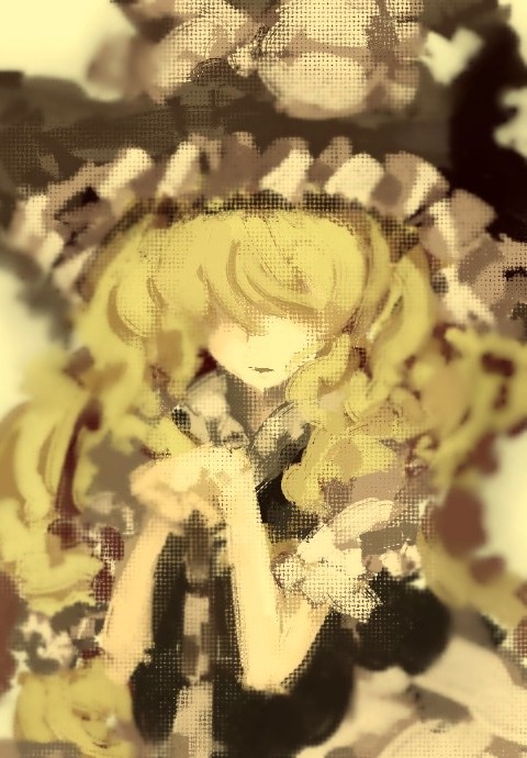 excellen browning, banpresto, super robot wars, lowres, 1girl, blonde hair, blue background, female focus, oekaki, solo