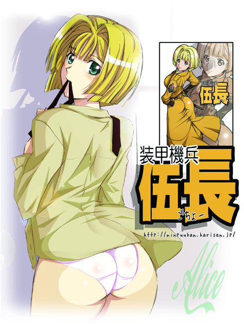 00saqua eyesassblonde hairbob cutbottomlessdress shirtlooking backmilitarymilitary uniformmouth holdnecktieno pantspantiesshirtshort hairunderwear